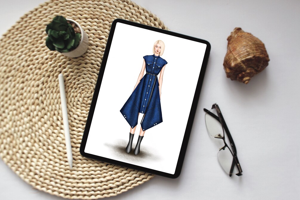Female Fashion Croquis Templates, 9 Head Fashion Figure, Front & Back Views
